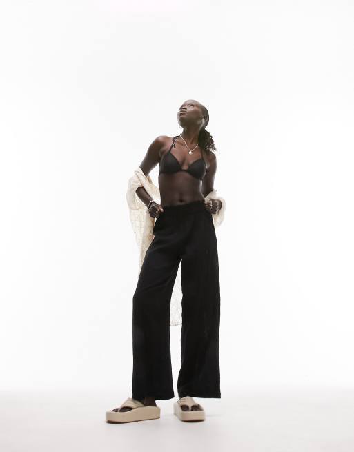 Topshop Petite - Pantalon de plage d'ensemble casual en tissu texturé - Noir
