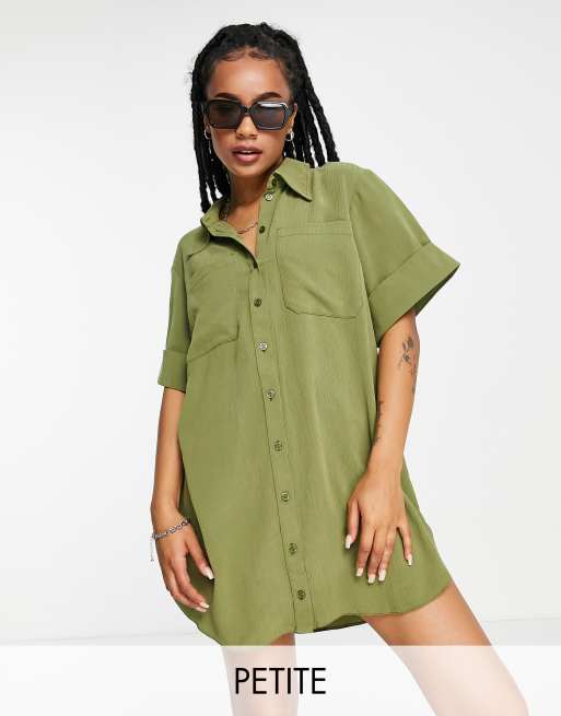 Topshop Petite - Robe chemise courte en tissu plissé - Vert