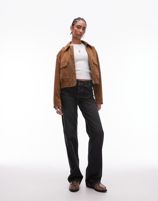 Topshop Tall - Ember - Jean droit à taille basse - Noir délavé