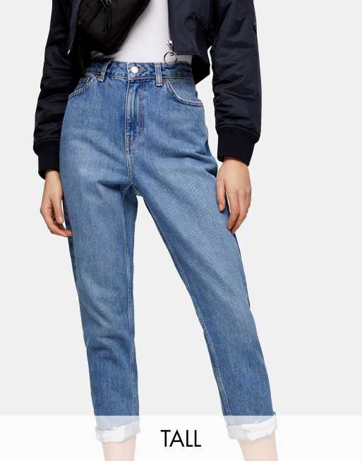 Topshop Tall - Jean mom à ourlet déchiré - Délavage moyen