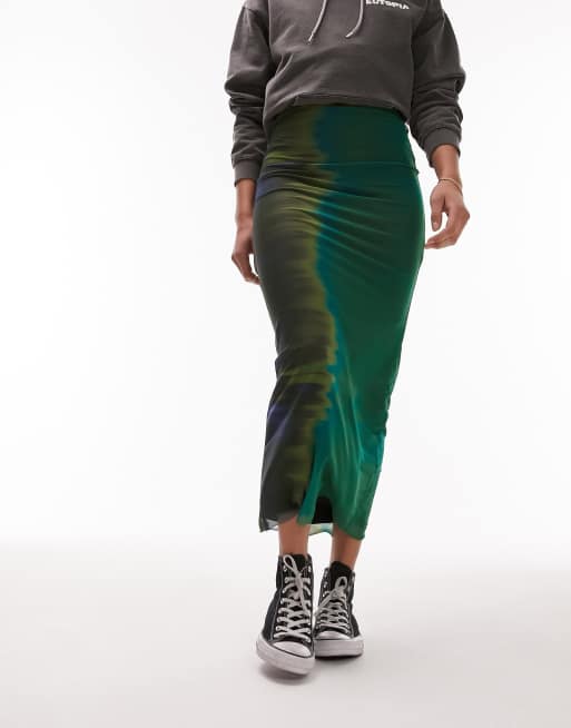 Topshop Tall - Jupe mi-longue en jersey à imprimé placé - Vert