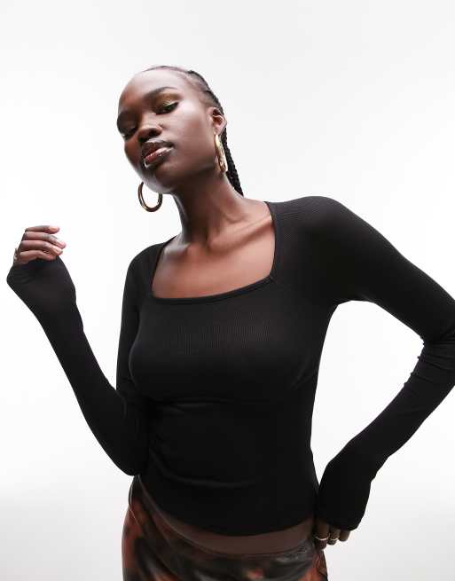 Topshop Tall - Top à manches longues et encolure carrée - Noir