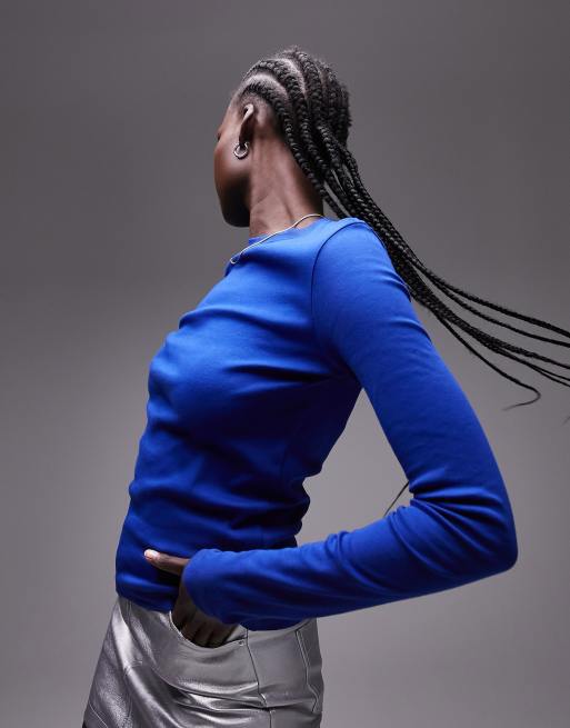 Topshop Tall - Top ajusté à manches longues - Bleu de cobalt