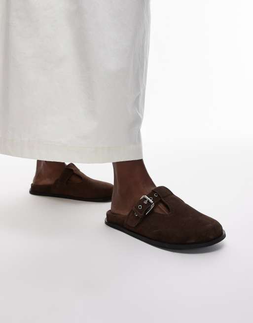 Topshop - Annie - Sabots en cuir véritable avec boucle - Chocolat
