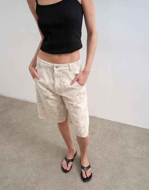 Topshop - Bermuda ample en denim à jacquard fleuri - Écru