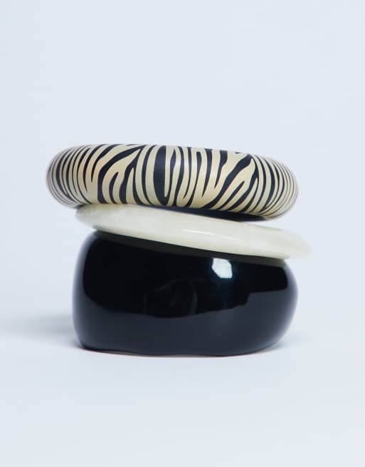 Topshop - Blaire - Lot de 3 bracelets jonc - Noir/blanc/zébrures