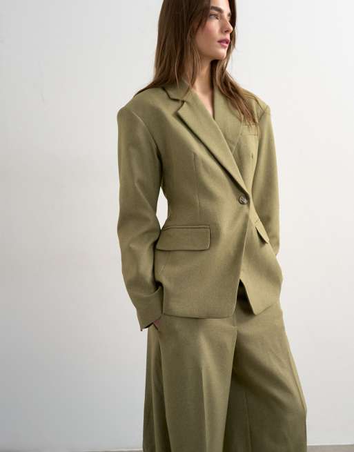 Topshop - Blazer d'ensemble cintré à épaulettes - Taupe