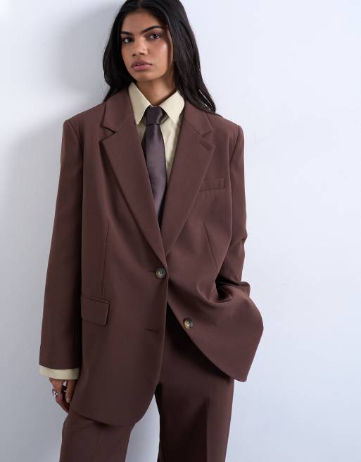 Topshop - Blazer d'ensemble coupe décontractée à 2 boutons - Chocolat