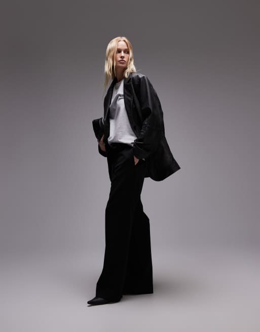 Topshop - Blazer en cuir véritable de qualité supérieure - Noir délavé