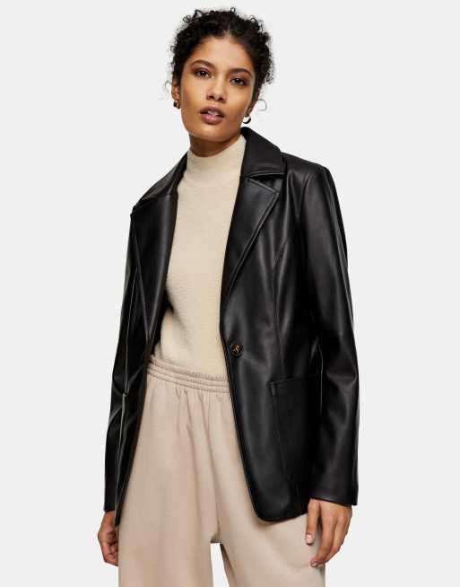 Topshop - Blazer imitation cuir - Noir