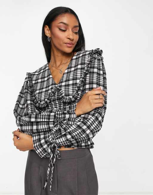 Topshop - Blouse à carreaux et col fantaisie - Noir et blanc
