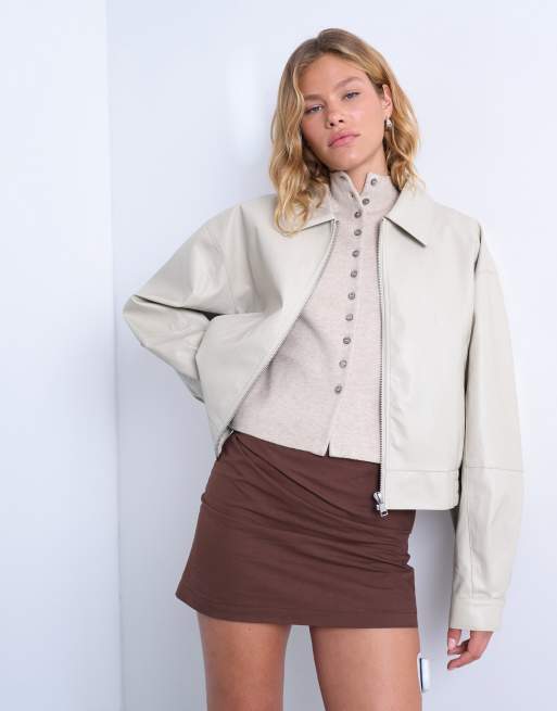Topshop - Blouson court zippé style motard à épaules tombantes en similicuir