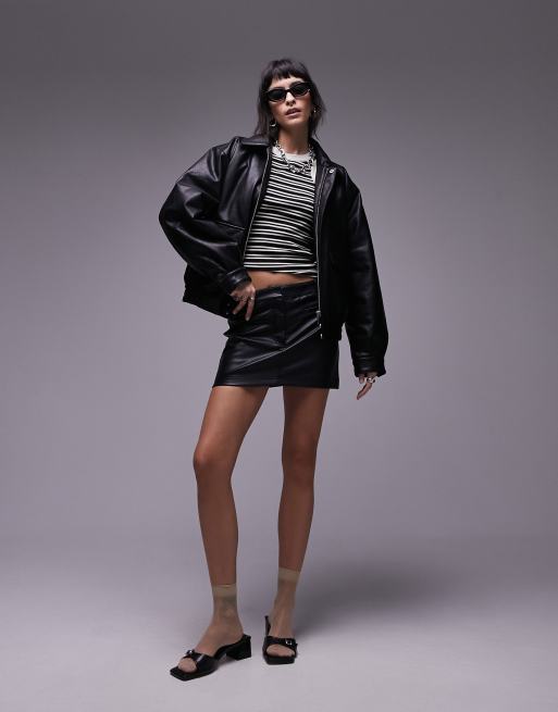 Topshop - Bomber imitation cuir - Noir