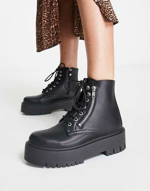 Topshop - Bottines chunky à lacets et fermeture éclair - Noir