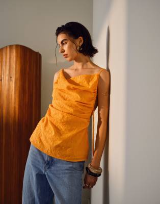 Topshop - Caraco brodé froncé sur les côtés - Orange