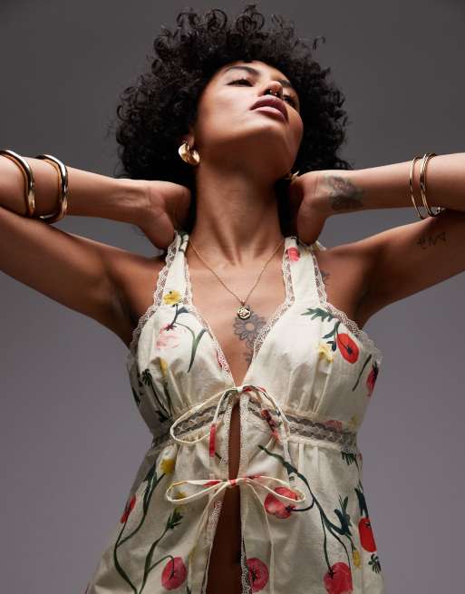 Topshop - Caraco d'ensemble à imprimé tomate et bordures en dentelle