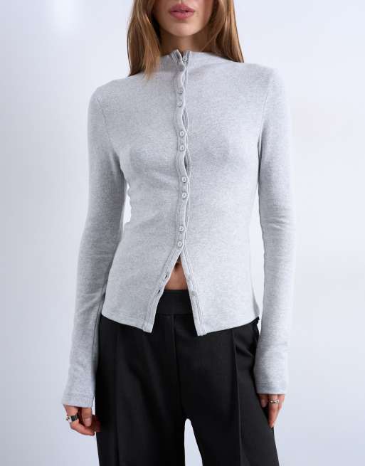Topshop - Cardigan top boutonné à manches longues - Gris