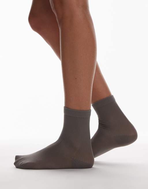 Topshop - Chaussettes côtelées transparentes - Gris