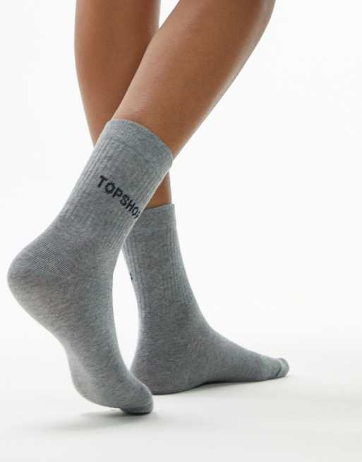 Topshop - Chaussettes de sport côtelées à logo - Gris