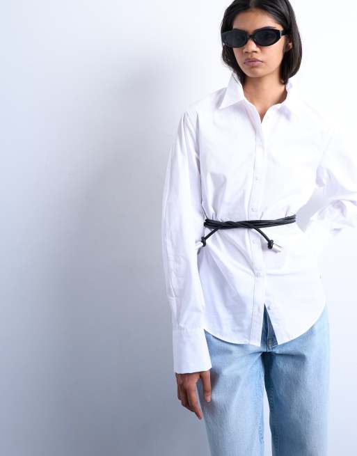 Topshop - Chemise à manches longues et taille cintrée - Blanc
