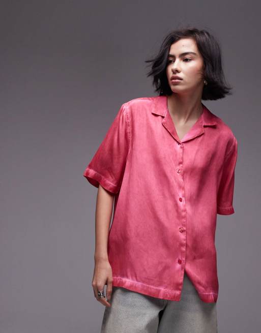 Topshop - Chemise d'ensemble en satin à manches courtes - Rose