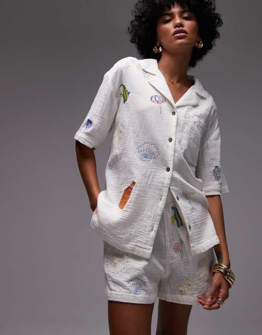 Topshop - Chemise d'ensemble style plage en coton à broderies - Blanc