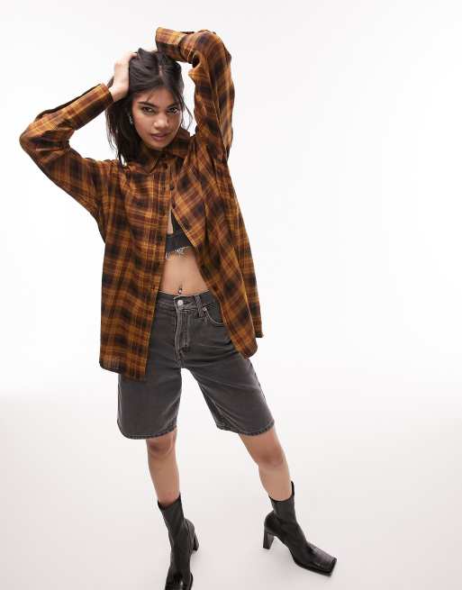 Topshop - Chemise oversize décontractée à manches longues et carreaux - Moutarde