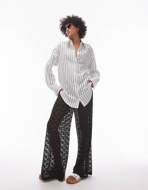 Topshop - Chemise oversize décontractée à rayures - Noir et blanc