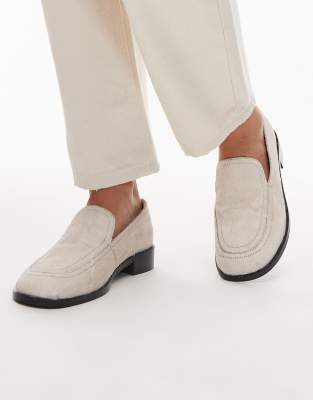 Topshop - Corrie - Mocassins plates en cuir effet poulain - Blanc cassé