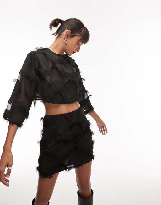 Topshop - Crop top d'ensemble à détails circulaires duveteux - Noir