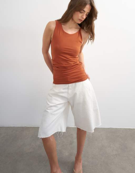 Topshop - Débardeur froncé sur le côté avec nœud - Marron