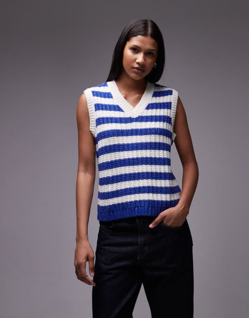 Topshop - Débardeur rétro rayé en maille - Bleu