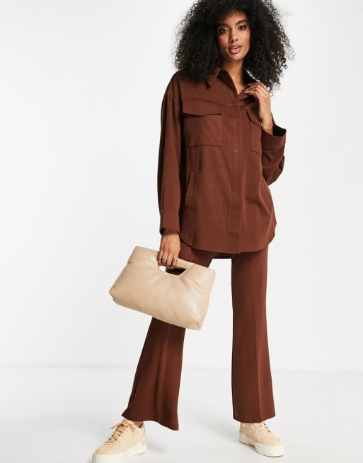 Topshop - Ensemble avec surchemise et pantalon - Chocolat