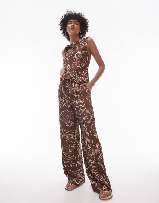 Topshop - Ensemble en satin à imprimé coquillage - Marron