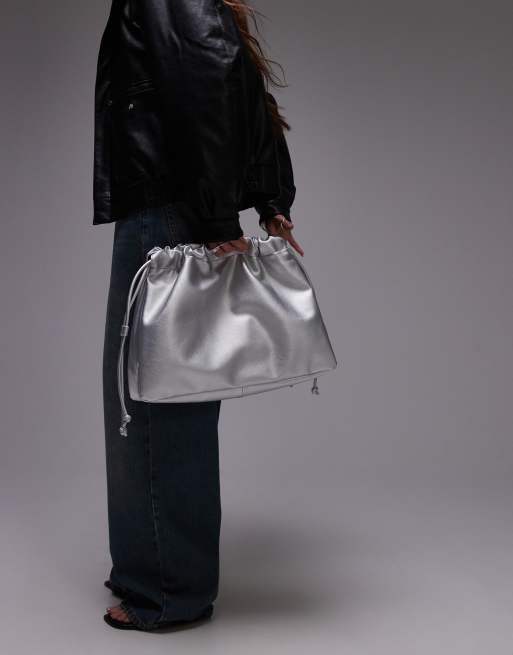 Topshop - Gabi - Pochette oversize froncée - Argenté