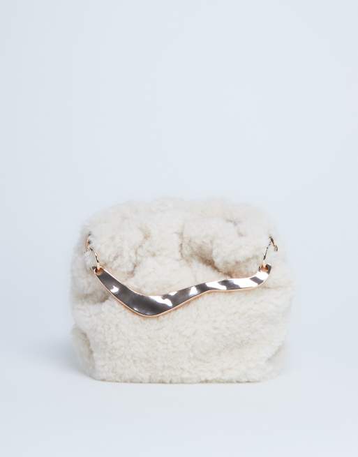 Topshop - Gabriette - Sac à main en imitation peau de mouton avec poignée métallique - Crème
