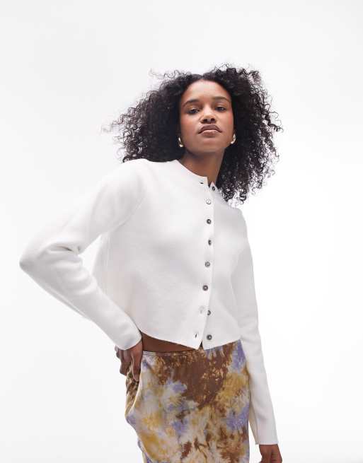 Topshop - Gilet court compact en maille - Ivoire
