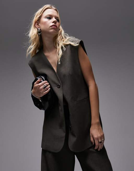 Topshop - Gilet de costume oversize d'ensemble - Marron tonique