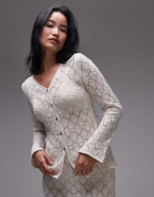 Topshop - Gilet d'ensemble en maille surpiquée - Écru