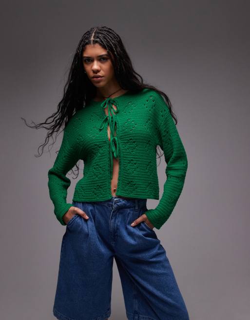 Topshop - Gilet noué en maille pointelle - Vert