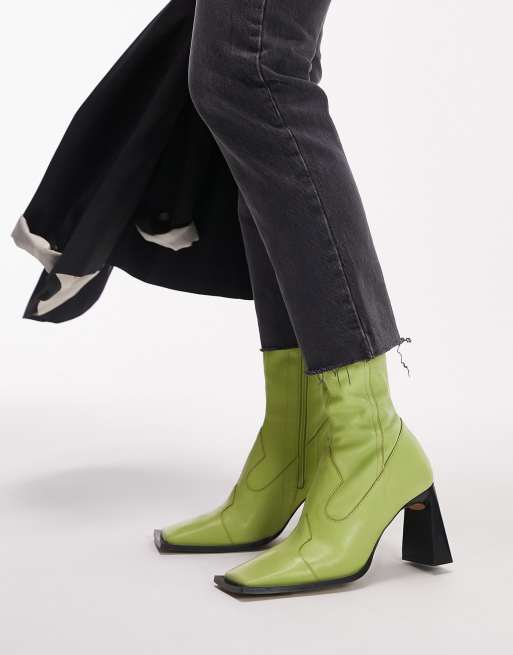 Topshop - Hudson - Bottines style western surpiquées en cuir de qualité supérieure - Citron vert