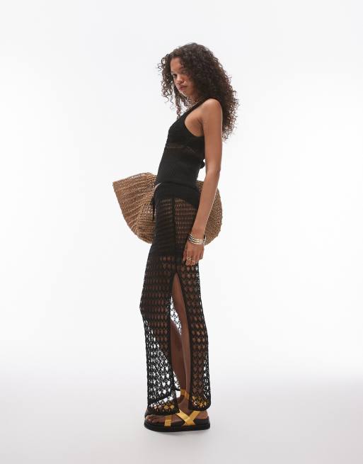 Topshop - Jupe d'ensemble en maille ajourée - Noir