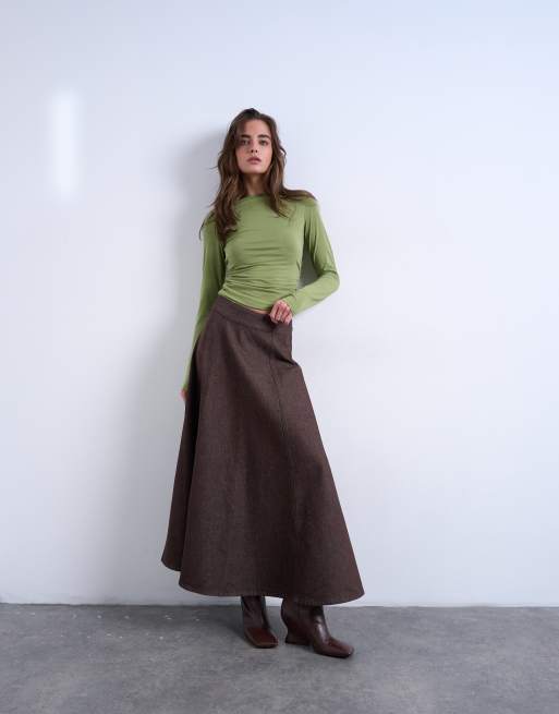 Topshop - Jupe en jean évasée - Marron