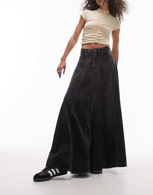 Topshop - Jupe en jean évasée - Noir délavé
