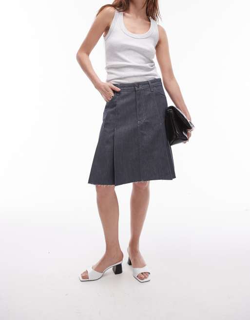 Topshop - Jupe en jean plissée longueur genou - Gris brut