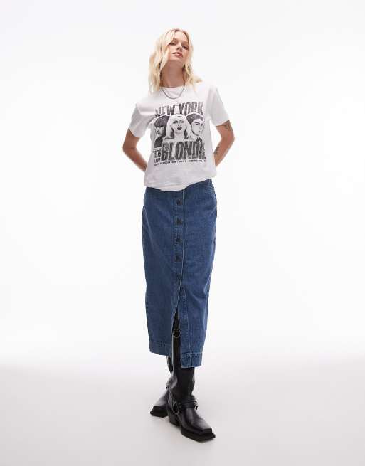 Topshop - Jupe longue boutonnée - Bleu moyen
