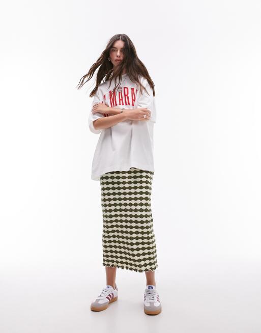 Topshop - Jupe longue droite en jersey avec rayures à motif - Olive