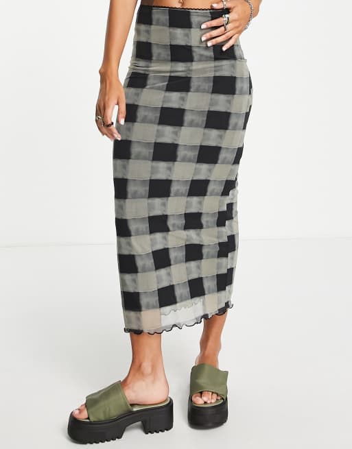 Topshop - Jupe mi-longue à carreaux ombrés - Anthracite