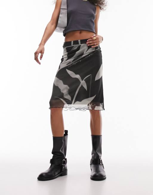 Topshop - Jupe mi-longue à imprimé effet collage style années 90 - Noir