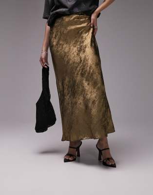 Topshop - Jupe mi-longue coupée en biais - Doré métallisé